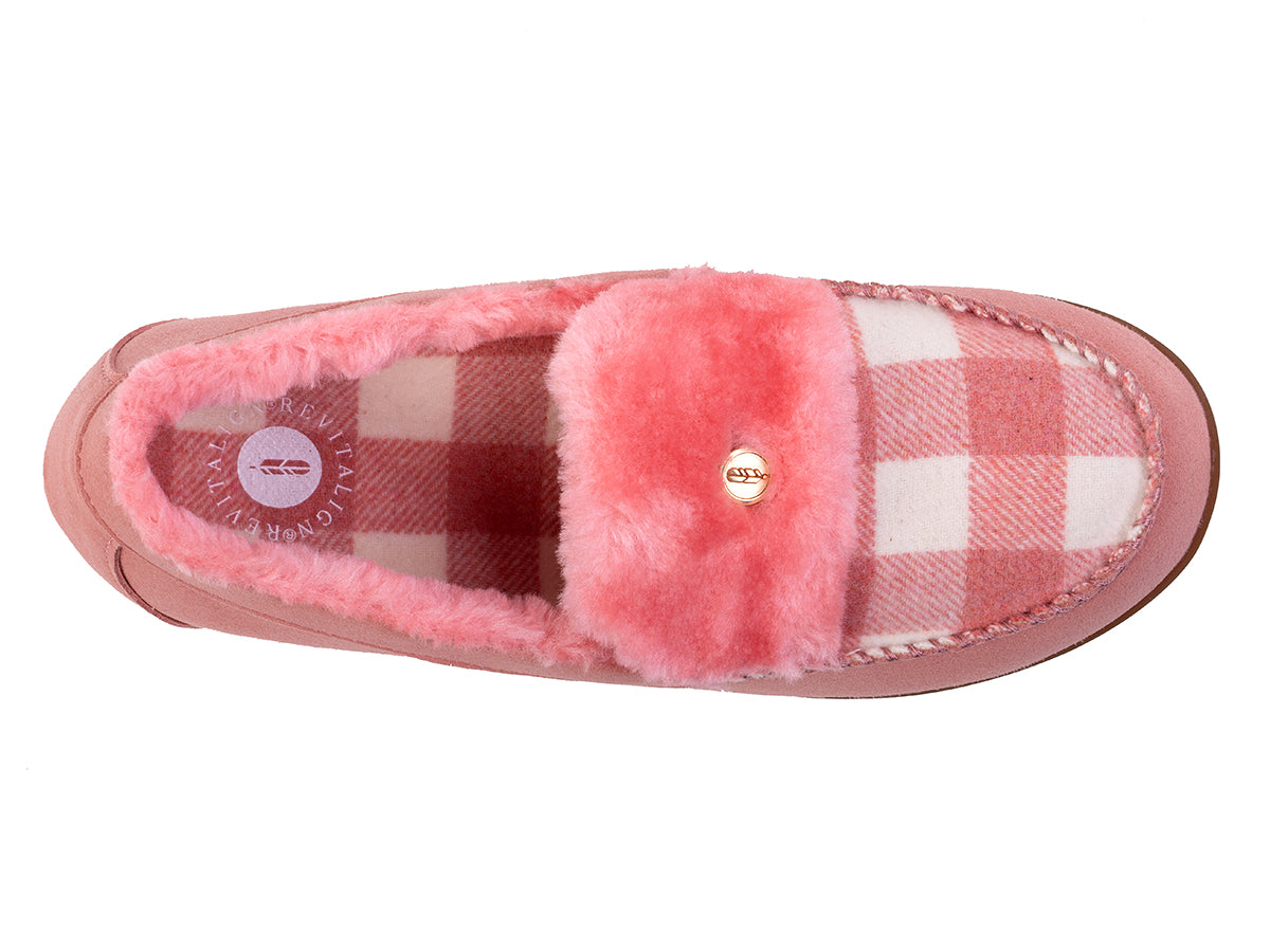 Experience exceptional softness and comfort with the Birch Buffalo Check slipper, your new favorite for cozy days. Featuring a cozy flannel upper and plush faux fur lining, this slipper offers a removable contoured footbed for ultimate cushioned support. With an errand-friendly outsole and Revitalign® Full Contact Comfort® footbed, enjoy stylish comfort and support wherever you go.