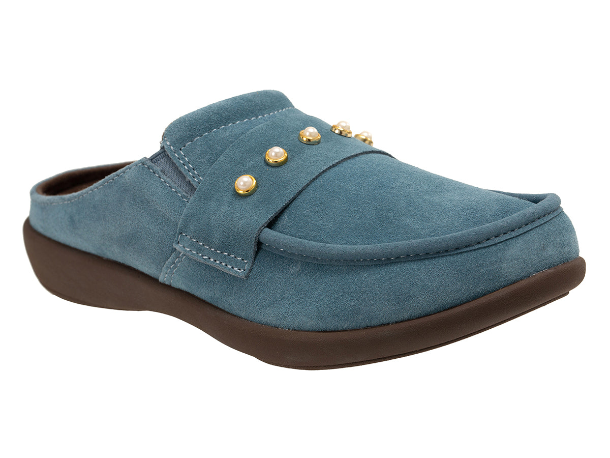 Where modern comfort meets classic charm, the Siesta Franny by Revitalign® is designed for easy, everyday wear with a convenient slip-on fit. Crafted with soft genuine suede, this shoe features stretch gore panels and a padded collar for a secure yet flexible feel. A timeless pearl trim adds a feminine touch that elevates this casual silhouette. At the heart of every step, the Siesta Franny offers a superior orthotic experience, delivering all-day support, enhanced alignment, and unmatched comfort.